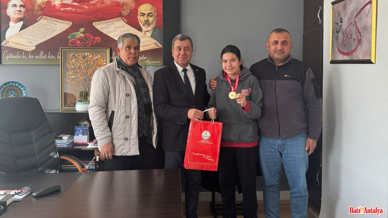 Antalya’da düzenlenen Okul Sporları Kick Boks İl Seçmelerinde önemli bir başarıya imza atan 80. Yıl Beykonak Ortaokulu öğrencisi Zuhal Acar, Kumluca İlçe Milli Eğitim Müdürü Yusuf Tekdemir’i makamında ziyaret etti.